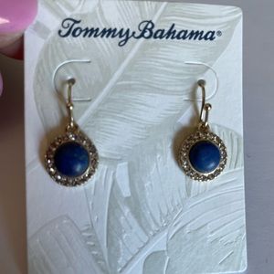Tommy Bahama Lapis Drop Earrings with Rhinestones~Blue/Gold