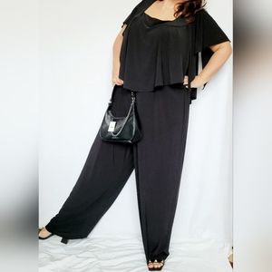Emma & Michelle Plus Size Jumpsuit Stretch Pull On Flutter Sleeves Black 3X