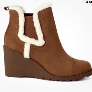 Scoop NYC Women’s Faux Suede Sherpa Lined Wedge Boots Shoes Size 8 NEW