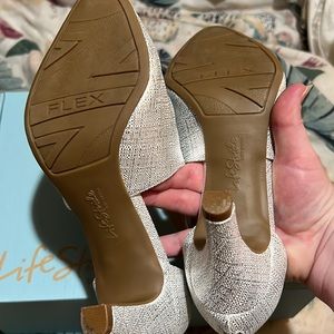 Very gently used Life Stride Giovanna silver heels in size 5.5. Worn only once; will come packaged in original box. Very cute and perfect for prom or a night out! Heels are approx. 2.5 inches.