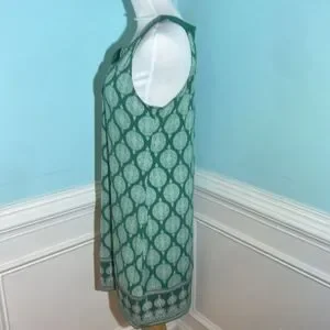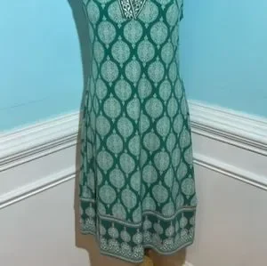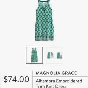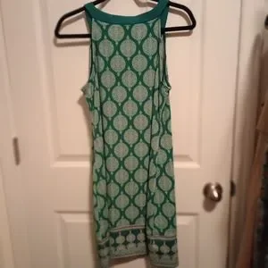 Magnolia Grace Dress, Green & Pink Design, Sleeveless, Knee Length, Medium Petite. Great used condition, smoke free Environment. I hung to dry and it looks great. Please note this is a MEDIUM PETITE, I'm 5'2" and this hits right at my knees.