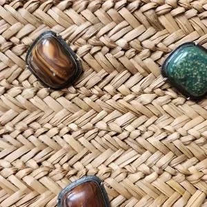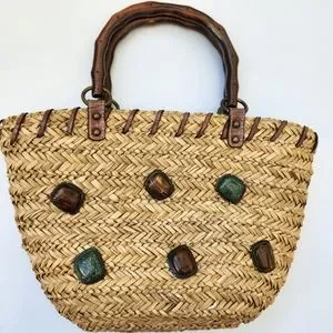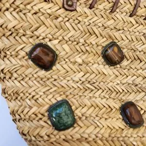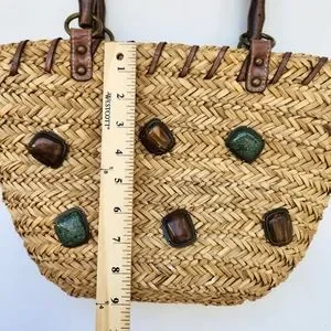 Boho Summer Woven Straw Bag Gem Stones Embellished Beach