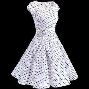 Vintage style white/black polka dot Audrey Hepburn 50s swing style dress.