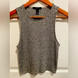 Women’s Forever 21 Boho Knit Black And White Crop Heathered Tank, Size Small