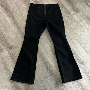 Universal Thread high rise flare button fly jeans. Inseam measures approx. 33 1/4”. Waist measures approx 16” laying flat across. Front rise is measuring at 11”. I wanted to love these jeans but they were just too long for me. Comes from a smoke free home. Comes from a smoke free home.