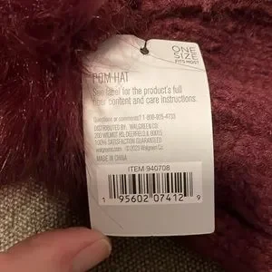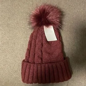 Burgundy Pom Hat. NWT. Pet free and smoke free home