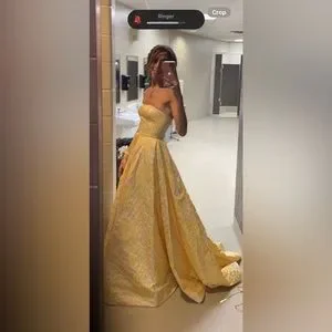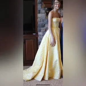 This is a used Sherri Hill Embroidered Floral Yellow Ballgown. I wore it once, i have had it for 3 years but it is in near perfect condition. It may only have a few small imperfections that could be easily taken out. This gown is a size 2.