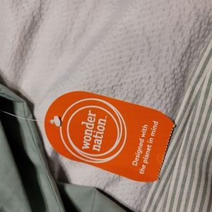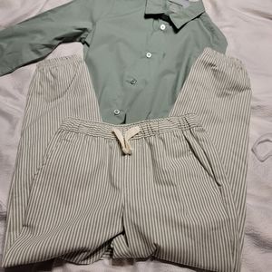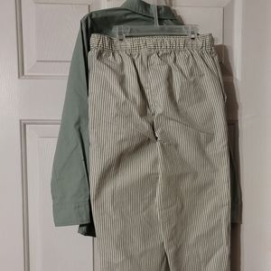 versatile boys suit in everyday khaki green . elastic waist and ankle.. perfect for special events. 60 cotton. 40 polyester. labeled size 8