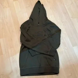 This cute hoodie is perfect for casual wear. Soft and cozy on the inside with a front pocket. Color is a darker army green. New with tags and never worn!