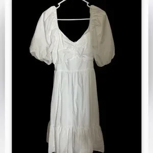Puff sleeve cotton white dress size large open tied back