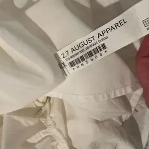 August apperal white puff sleeve dress with an open tied back