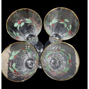 Christmas Champagne Flutes Chrystal Clear w Poinsettia Glass 9.5' Tall. Set of 4