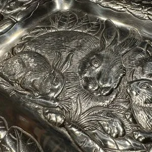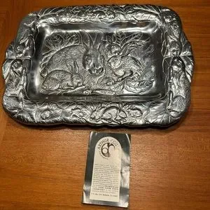 Never used vintage 1990 Arthur Court aluminum bunny tray. So cute for Spring!