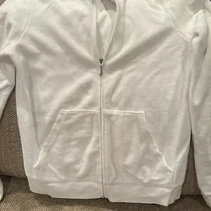 Juicy Couture White long sleeve Velour track Jacket. small stain on the left sleeve, used good condition