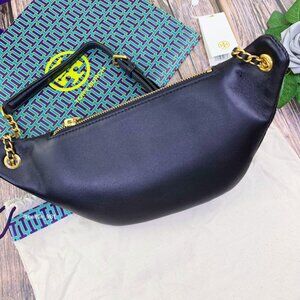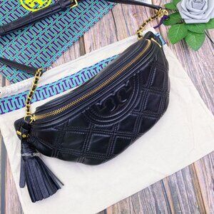 Tory Burch Black Leather Soft Fleming Belt Bag