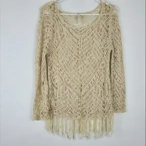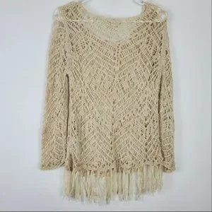 Rachel Roy Open Knit Top Womens Size M Cream Ivory Long Sleeve Tassel Bottom