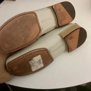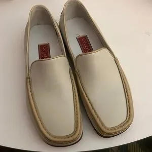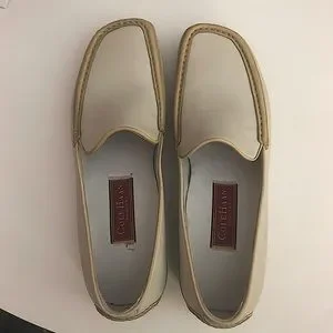 Loafer / moccasin style Cole Haan. Barely worn. Like new. Pretty soft leather. cream / off-white with buttery trim. Sz 9