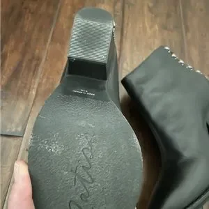 When city glam meets country charm. Rendered in smooth genuine leather, the Orwell will sure add an edge to your look with its silver-toned studded embellishment and unique heel counter zip fastening. Matisse Orwell black pointed toe boots made in Brazil. Size 10M