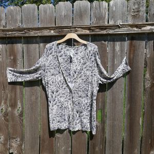 Chicos Smoky Fanfare Dalian Cardigan Sweater. Full button, 3/4 sleeves. Shades