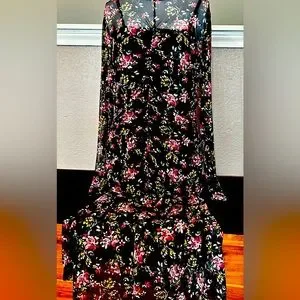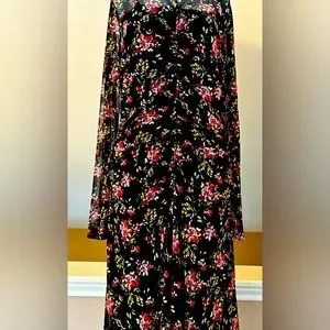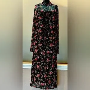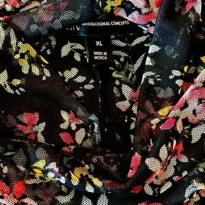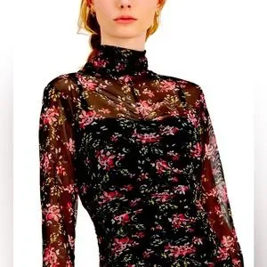 INC International Concepts Floral-Print Mock-Neck Ruched Mesh Dress Size XL