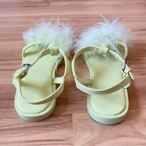 Zara Girls Feather Sandals in color lime green. Kids size 13.5. So adorable with the Zara Voluminous Poplin dress(also available to bundle in my closet) and in great condition. Worn once.