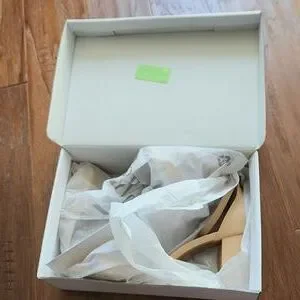 These heeled sandals are beautiful! The color is Nude. I bought the wrong size and had to buy a smaller size and forgot to take these back within the 30-day window. I absolutely love these sandals and they go with any color. They run about a 1/2 size big. I normally wear an 8 and 1/2 and I had to get another pair in a size 8.