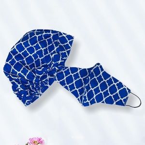 Handmade Women's cotton hat combined with masks Blue white. Shipped with USPS First Class.