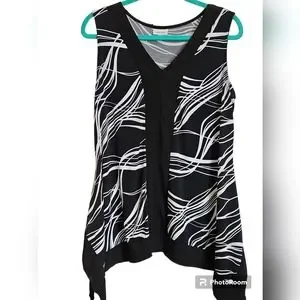 Chic Avenue tank top. Black with white wave design. Sleeveless and stylish.