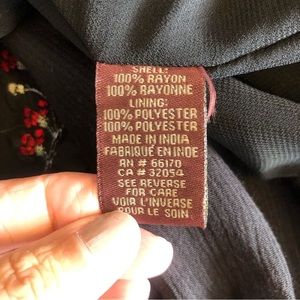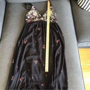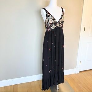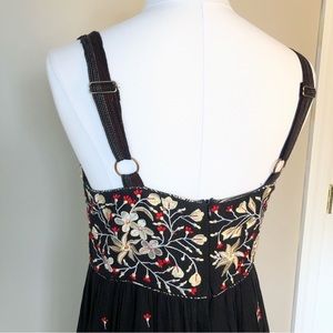 ANTHROPOLOGIE Ranna Gill Fiona Black Maxi Dress Red Floral Embroidery Ruffle Hem