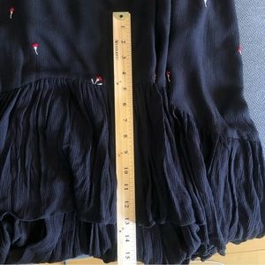 You’ll be looking your best with this ultra-fashionable maxi dress from Ranna Gill for Anthropologie. Its beautiful, gauzy design is highlighted with a bold red, tan and gold floral embroidery detail and v-neck shape. It features wide straps that are adjustable. A ruffle high low hem adds an effortless touch of femininity to this ultra-attractive piece. Its lightweight, airy fabric makes it perfect for the summer months and ideal for all occasions. Look effortlessly gorgeous in this elegant black dress any time of year.