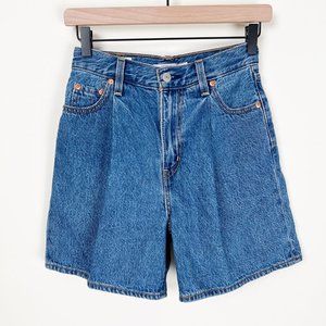 Levi's Now And Then Pleated Ribcage Denim Shorts Ultra High Rise Waisted Preppy