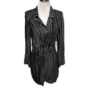 Zara Pinstriped Wrap Blazer Mini Dress Black Size Small