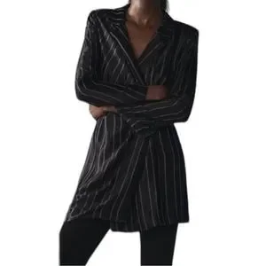 Zara Pinstriped Satin Effect Wrap Blazer Mini Dress