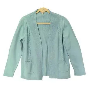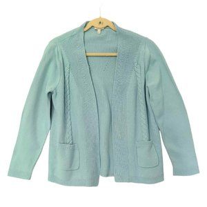 Talbots Cardigan Sweater Women Large Petite Blue Open Front Coastal