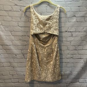 Aidan Mattox | Sleeveless Lace Jacquard Champagne Mini Cocktail Dress | Size 8