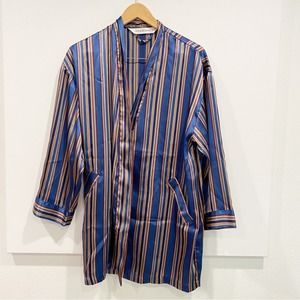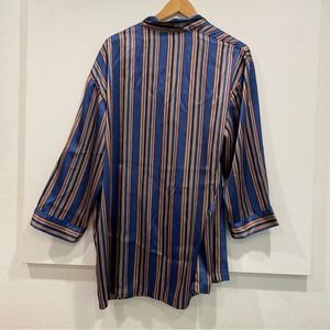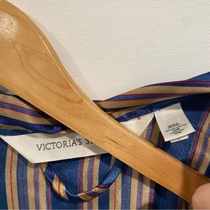 Victoria’s Secret Blue Gold Striped Button Front Silky Lingerie Top