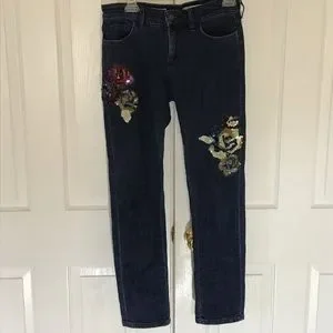 Pilcro slim boyfriend jeans jeans with floral sequins Sz 26