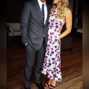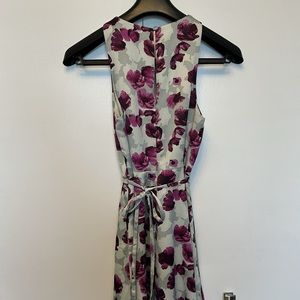 Midi Banana Republic gray and purple floral dress with ruffle bottom. Keyhole back, waist tie and pockets. Perfect condition