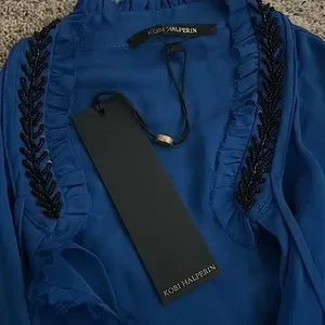 Stunning NWT Kobi Halperin Royal Blue Black Beaded Margo Blouse Long Sleeve Shirt Top. Size S.