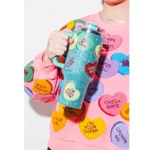 Brand New Queen of Sparkles Mint Conversation Heart Rhinestone Tumbler