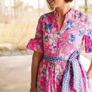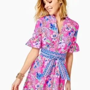 NWT LILLY PULITZER MARILISA STRETCH SHIRTDRESS PINK ISLE LAST BUD NOT LEAST