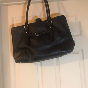 TUMI Villa Turin Black Canvas w/ Leather Trim Commute Shoulder Tote Bag #73105D2