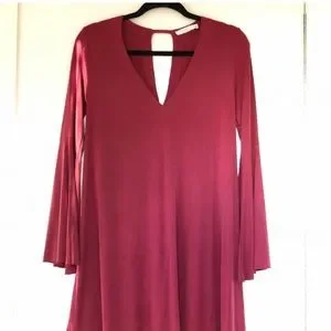 This plum bell sleeve dress made by LUSH can be dressed up or down to suffice various occasions.