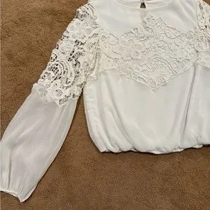 Lace at bodice and sleeves.