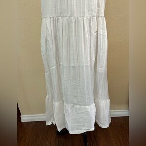 Alfani Pleated Midi Desert Breeze White Tiered Sleeveless Dress L