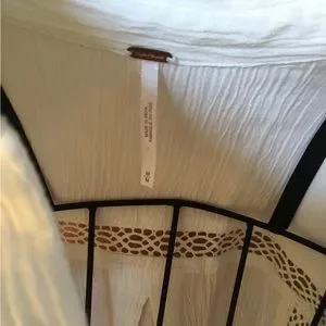 Embrace the bohemian style with this beautiful Free People blouse in ivory. The top features a button-down front with a collared neckline and long balloon sleeves with button cuffs. Fun crochet and beaded detailing throughout. Super awesome bohemian top! BRAND: Free People SIZE: M