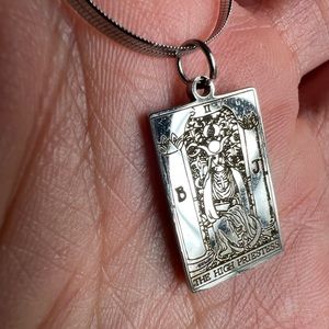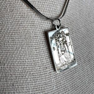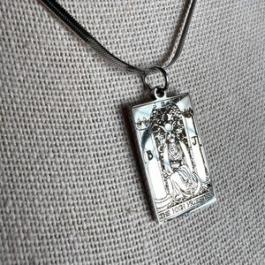 925 Stainless Steel HIGH PRIESTESS Tarot Card Necklace Pendant