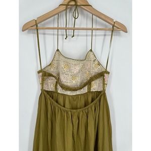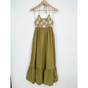 ZARA Mixed Beaded Crochet Lace Dress Halter Backless Khaki Midi-Maxi Dress NWT