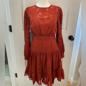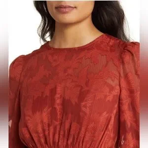 NWOT ELIZA J Metallic Stripe Floral Jacquard Long Sleeve Chiffon Dress
