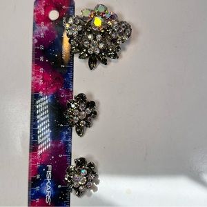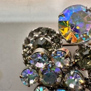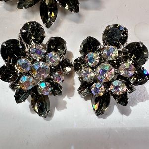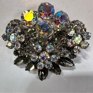 Absolutely stunning VERIFIED Juliana brooch and clip on earring set. Smokey gray & Aurora Borealis rhinestones.